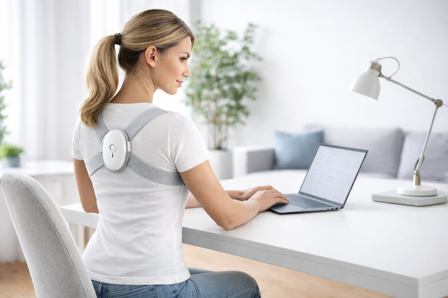 Der RückenGlück® Haltungstrainer Pro unterstützt dich dabei, deine Körperhaltung im Alltag bewusster wahrzunehmen – sanft und alltagstauglich.